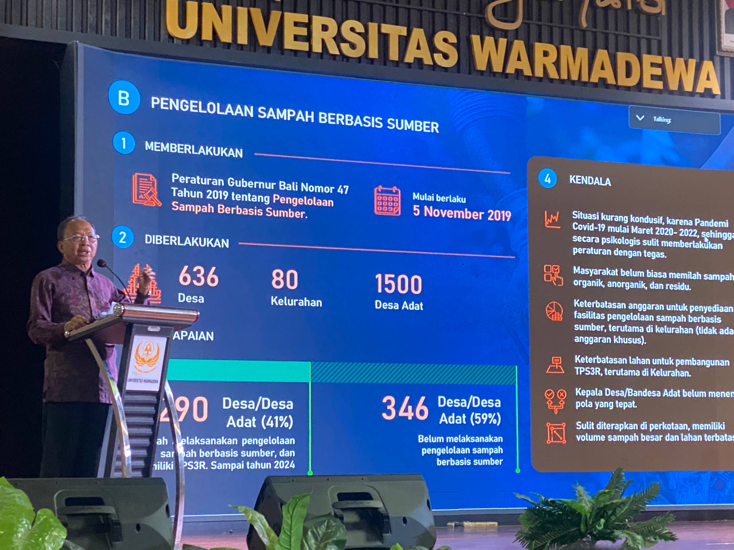 Secara normatif, Koster menyatakan bahwa Bali memiliki sejumlah kebijakan yang kuat. Namun, ia mengakui bahwa pelaksanaannya jauh dari optimal. Salah satu kebijakan yang belum optimal menurutnya adalah pengelolaan sampah berbasis sumber. Koster menganggap pandemi Covid-19 yang terjadi pada tahun 2020 sebagai kendala pelaksanaan kebijakan tersebut. “Karena masyarakat secara psikologis sedang susah, karena ekonominya susah. Nggak ditekan aja sudah susah. Apalagi ditekan ini, bisa berontak dia,” kata Koster dalam pidatonya.