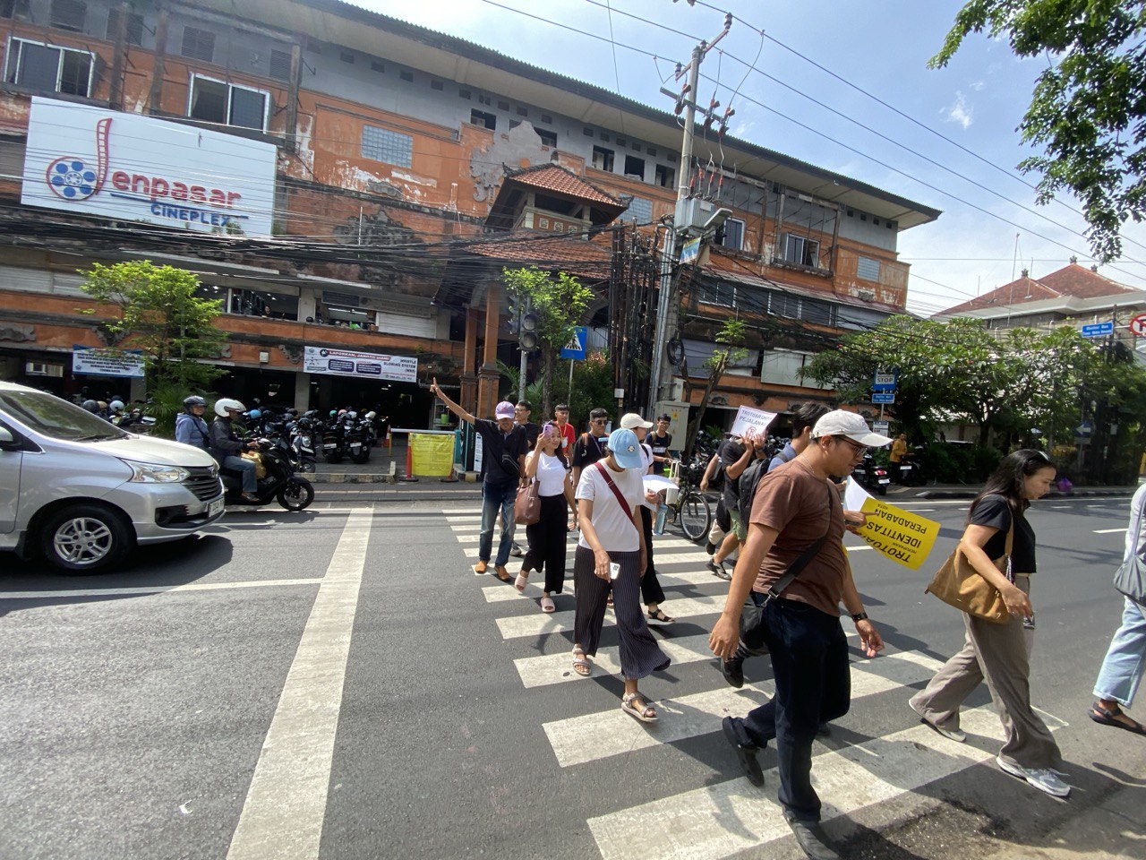 Perjalanan dimulai dari Denpasar Cineplex menuju Jalan Gajah Mada. Baru berjalan beberapa meter, kami menemui kendala yang cukup berisiko untuk pejalan kaki. Di depan Denpasar Cineplex terdapat lampu penyeberangan jalan, tetapi tidak berfungsi. Hal ini menyulitkan kami menyebrang karena sejumlah kendaraan melaju kencang.