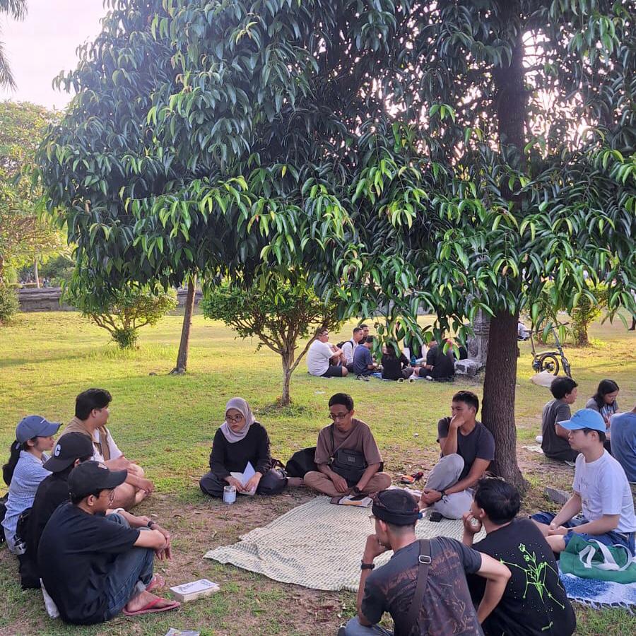 Suasana sore hari di taman Monumen Bajra Sandhi, Denpasar, Minggu (26/10/2025). Sejumlah komunitas, termasuk komunitas pembaca buku, memanfaatkan ruang publik tersebut untuk diskusi. (Foto: Jarot)