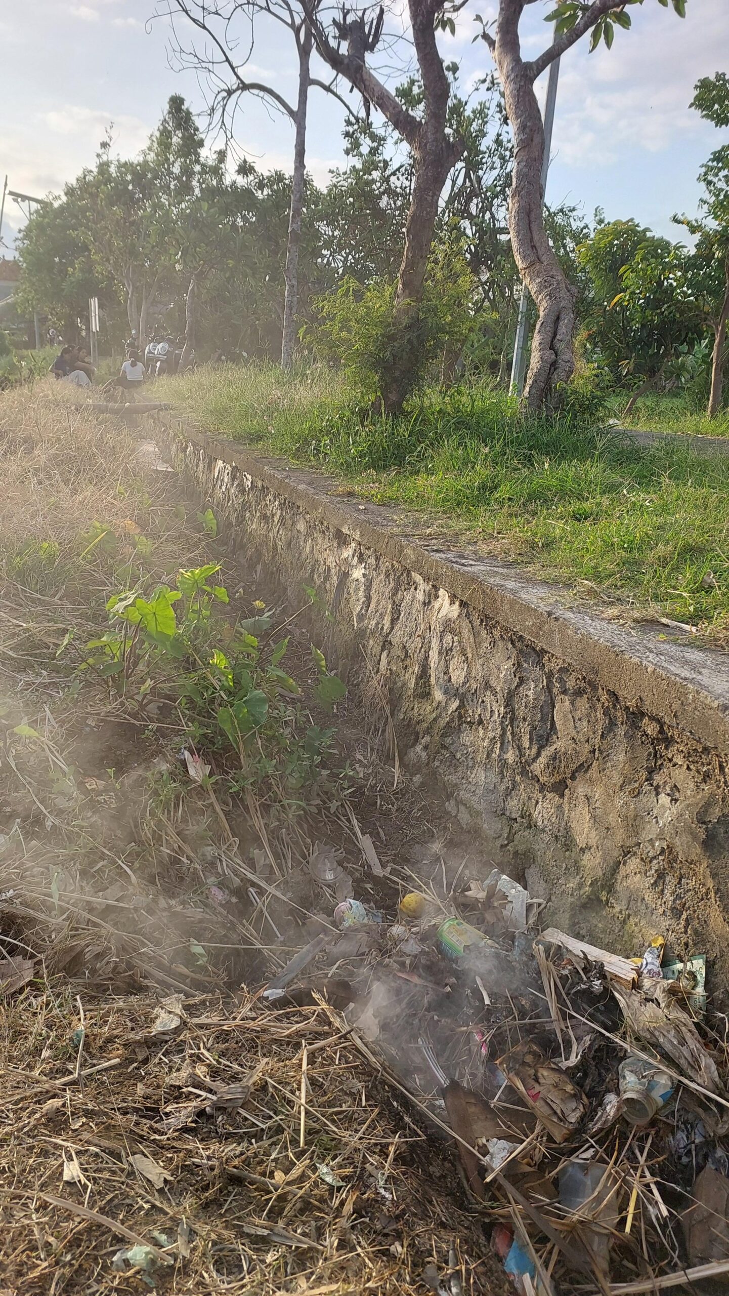 Lebih memprihatinkan lagi, ada penggarap sawah yang memilih membakar sampah yang tersangkut di parit-parit, termasuk sampah plastik.