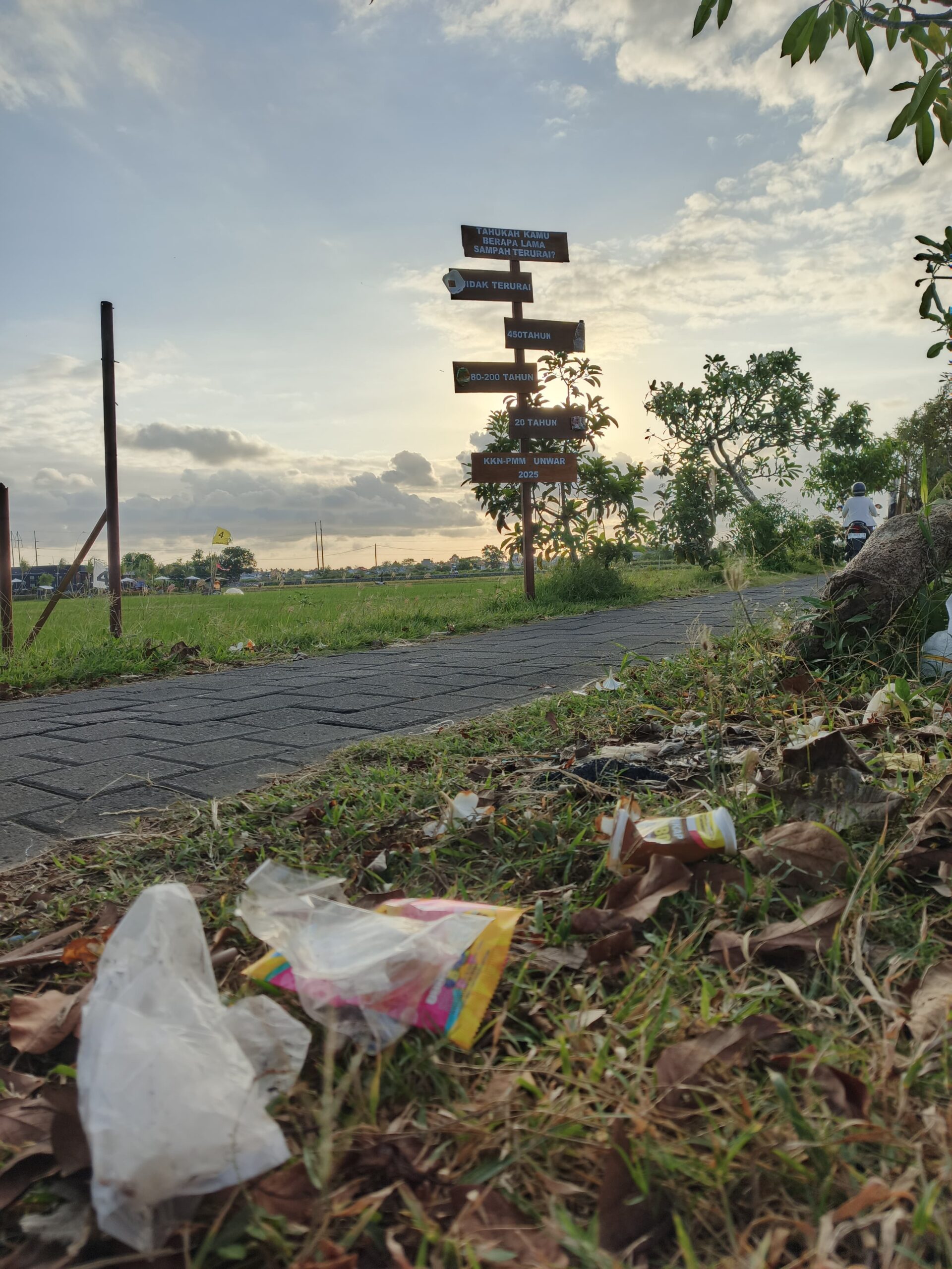 “Kami terbuka berkolaborasi, termasuk pemasangan plang lama hancurnya sampah plastik oleh mahasiswa KKN Universitas Warmadewa di areal jogging track Prapat Beris,” Wayan Dina, Sekretaris Subak Intaran.