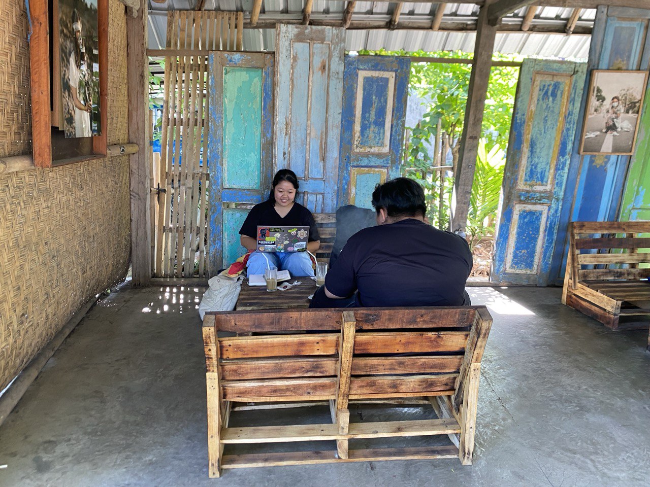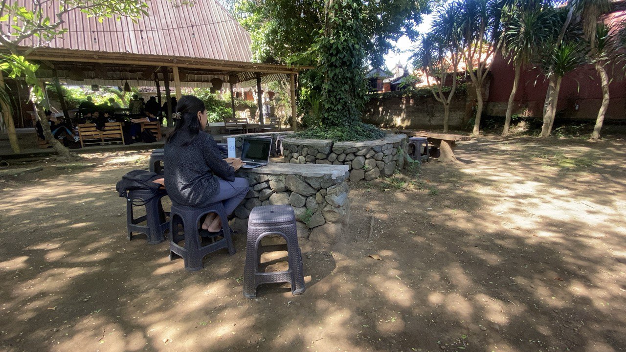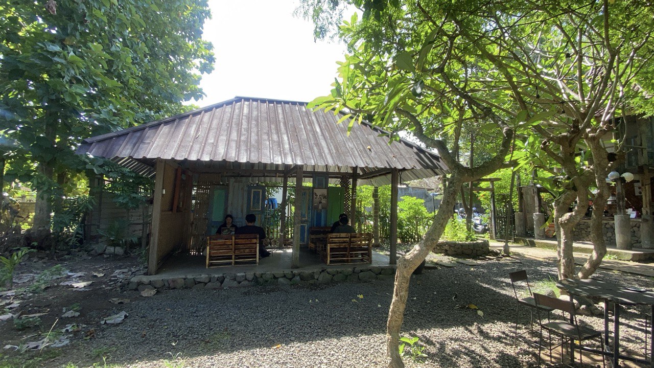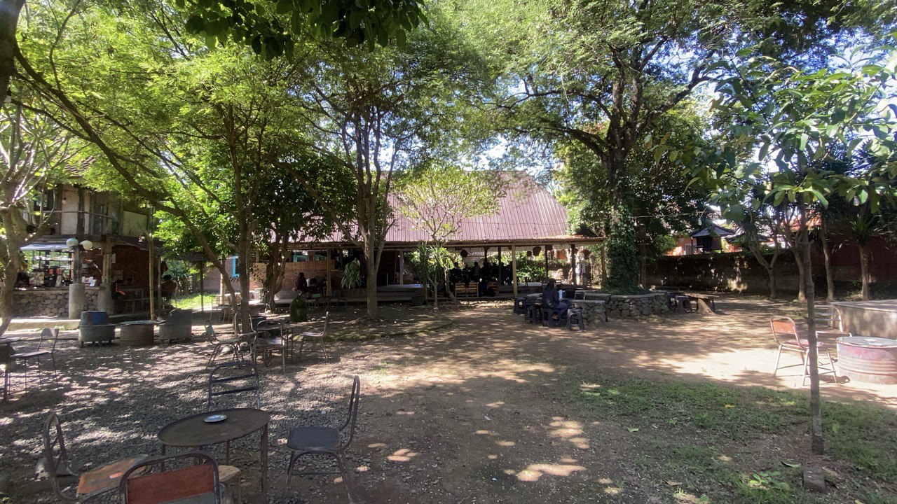 Ada banyak pilihan tempat yang bisa diduduki. Bangunan yang menyatu dengan dapur dilengkapi meja panjang yang cocok digunakan untuk Work From Cafe (WFC) atau diskusi kelompok bersama teman. Stop kontak hanya tersedia di tengah, tapi jumlah colokannya cukup banyak. Di balai itu juga ada meja dan kursi pendek. Spot ini lebih cocok digunakan untuk nongkrong ramai-ramai daripada membuka laptop.