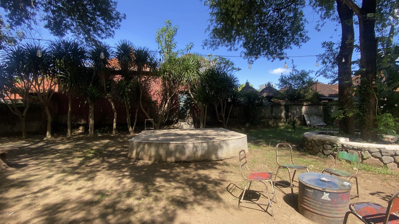 Halaman Tempo Dulu Kopi juga dilengkapi meja dan kursi kecil. Ada juga tempat duduk yang melingkari pohon. Berhadapan dengan kasir, ada balai kecil yang berisi meja dan kursi pendek. Ada juga bale bengong di tengah halaman.