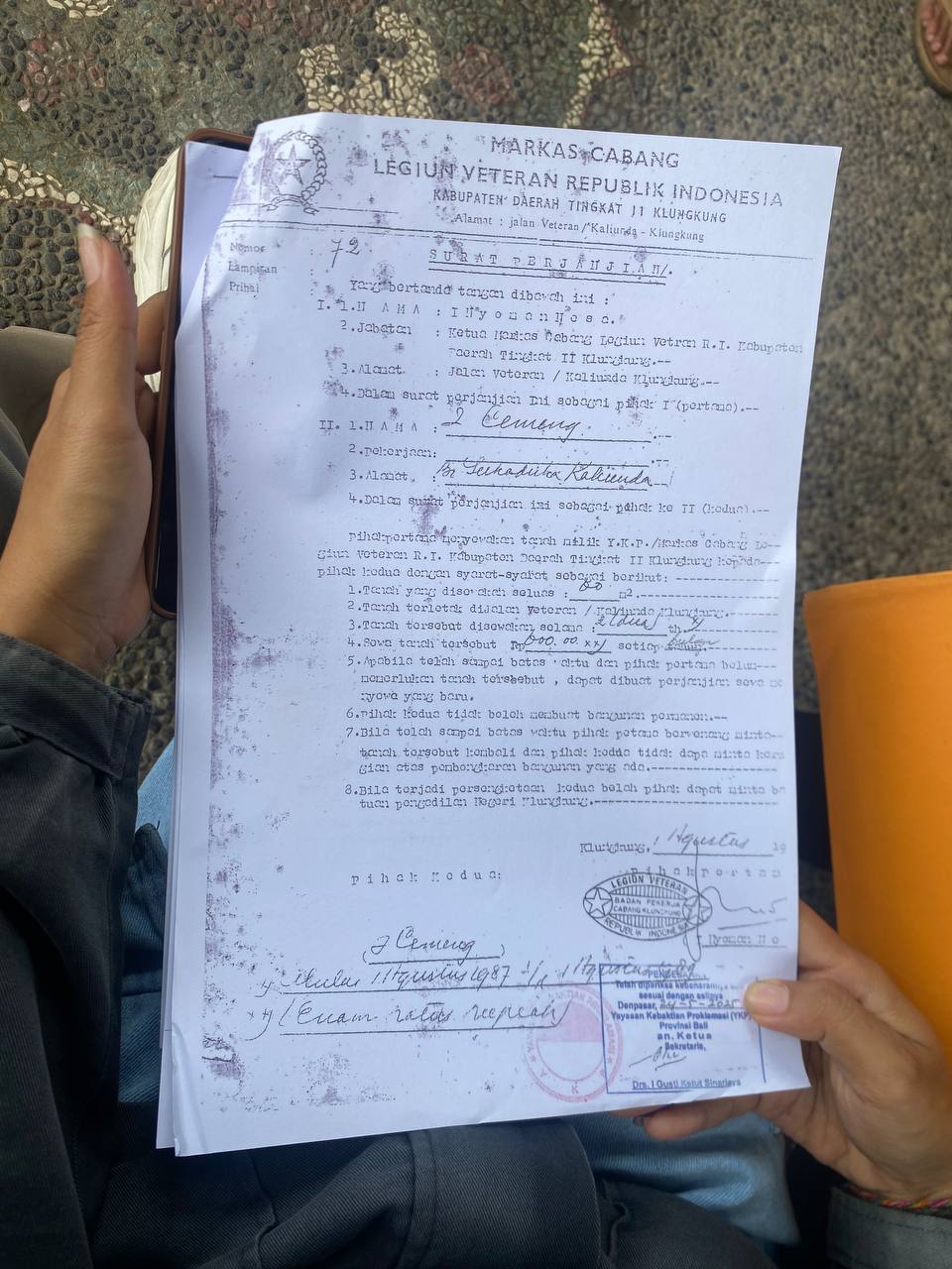 Setelah puluhan tahun mendiami rumah itu, pada tahun 2021 tiba-tiba tanahnya diakui oleh orang lain. Saat itu, ia dan beberapa warga setempat tengah menunggu kelanjutan Pendaftaran Tanah Sistematis Lengkap (PTSL) yang telah diajukan secara kolektif sejak tahun 2017. PTSL merupakan proses pendaftaran tanah yang dilakukan secara bersamaan untuk seluruh objek pendaftaran di seluruh Indonesia, dalam satu desa/kelurahan atau tingkat administratif yang setara. Program ini dilaksanakan oleh Badan Pertanahan Nasional (BPN) untuk memberikan kepastian hukum atas hak tanah dan mengurangi sengketa tanah.
