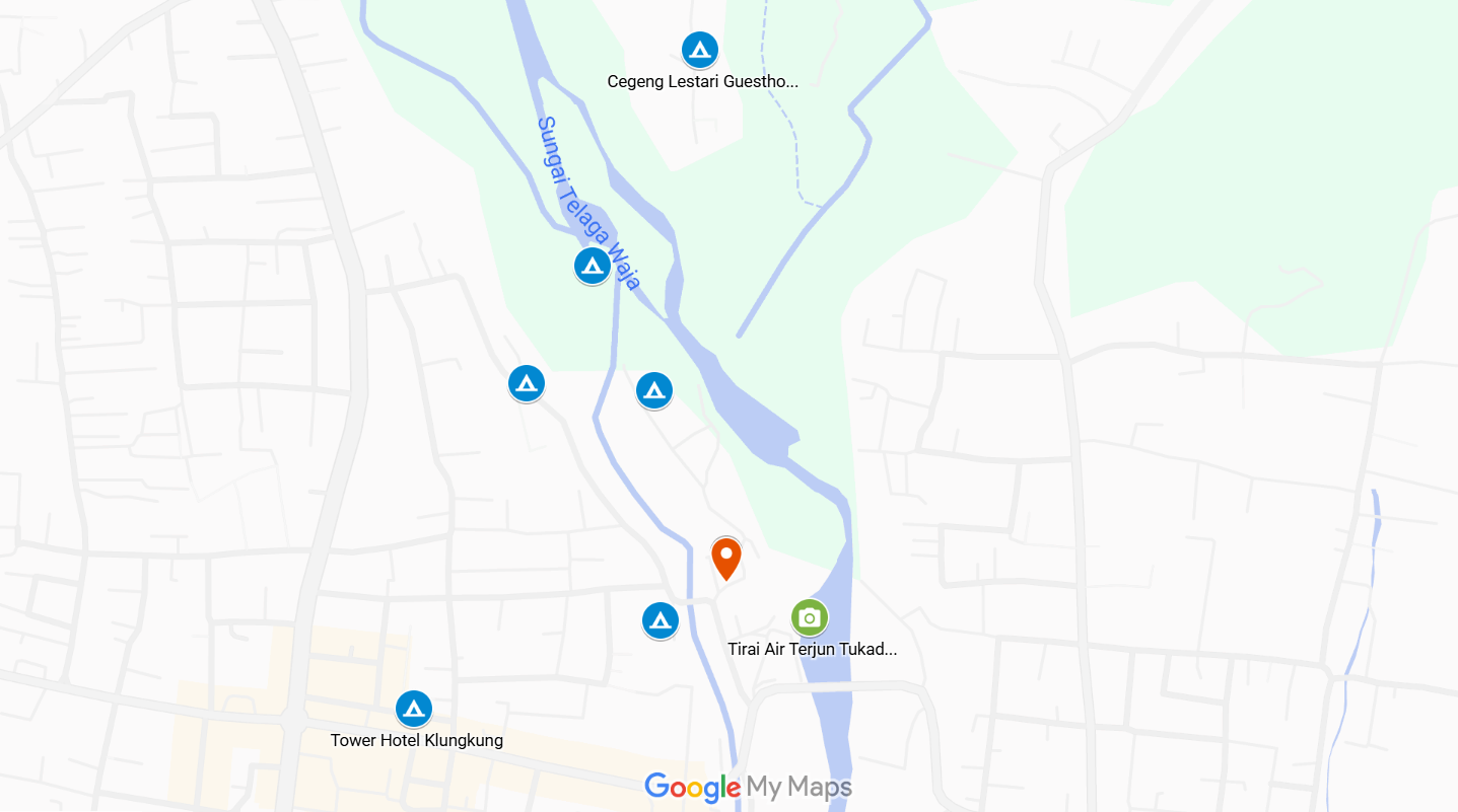 Tidak jauh dari Tukad Unda, Kabupaten Klungkung, rumah-rumah berbaris. Di Google Maps, lokasi yang kami datangi terdeteksi sebagai kawasan Tirai Air Terjun Tukad Unda. Sementara, secara administratif, lokasi tersebut berada di bantaran Tukad Unda Br. Sukaduka, Lingkungan Lebah, Semarapura Kangin, Kabupaten Klungkung. Lokasinya merupakan jalan masuk menuju Unda River Camp, lokasi kemah yang sedang hits di Kabupaten Klungkung.