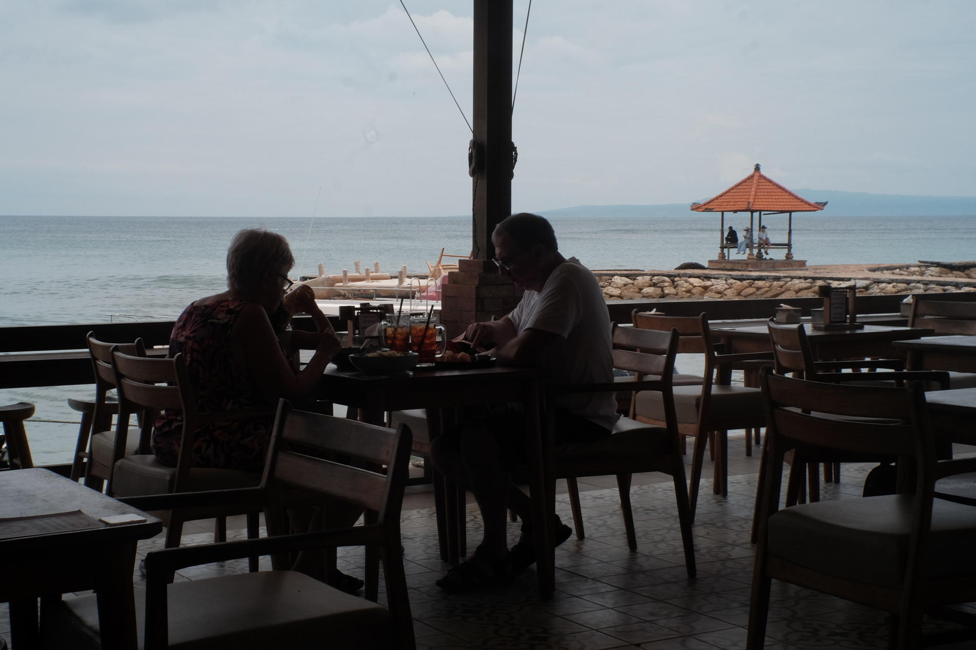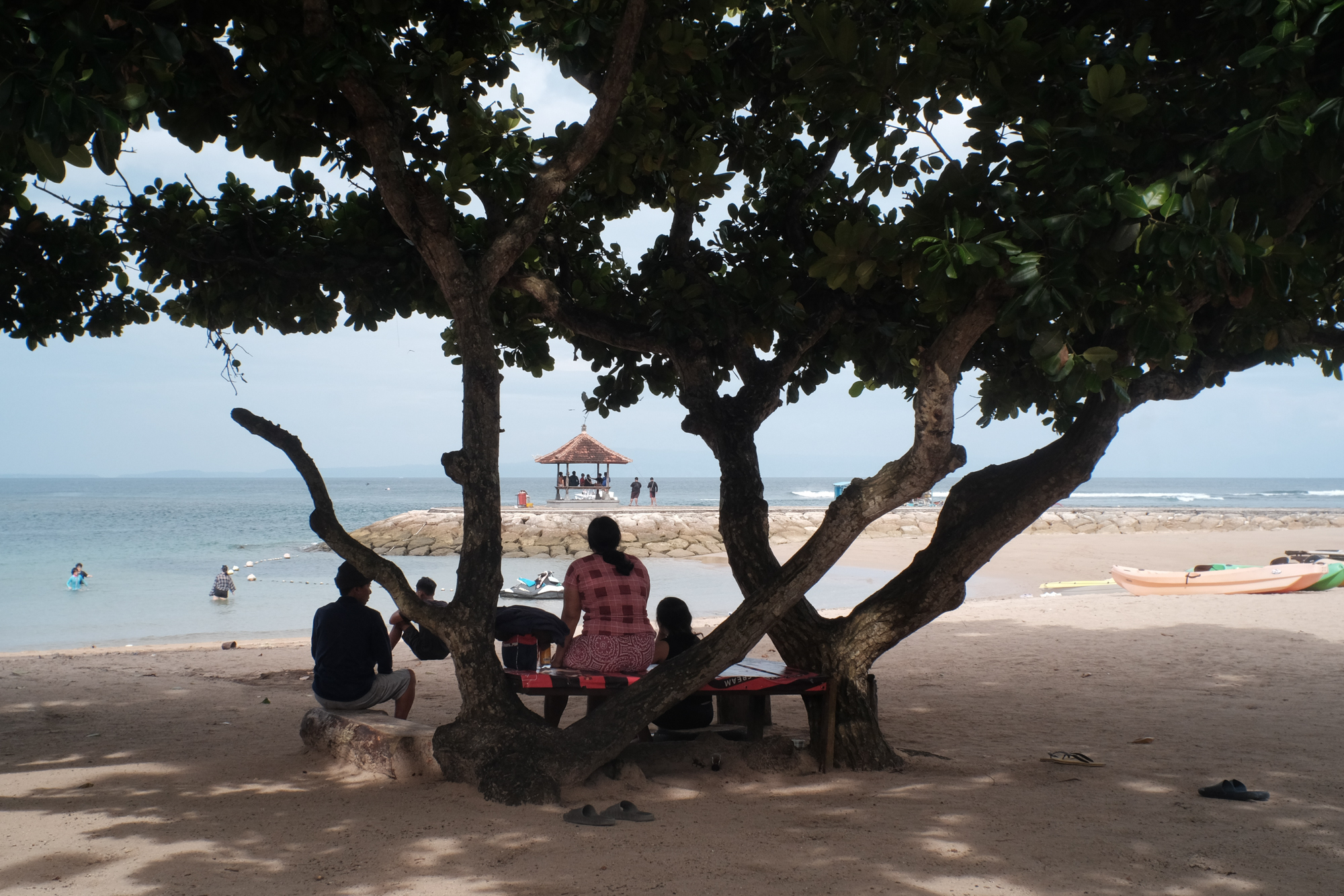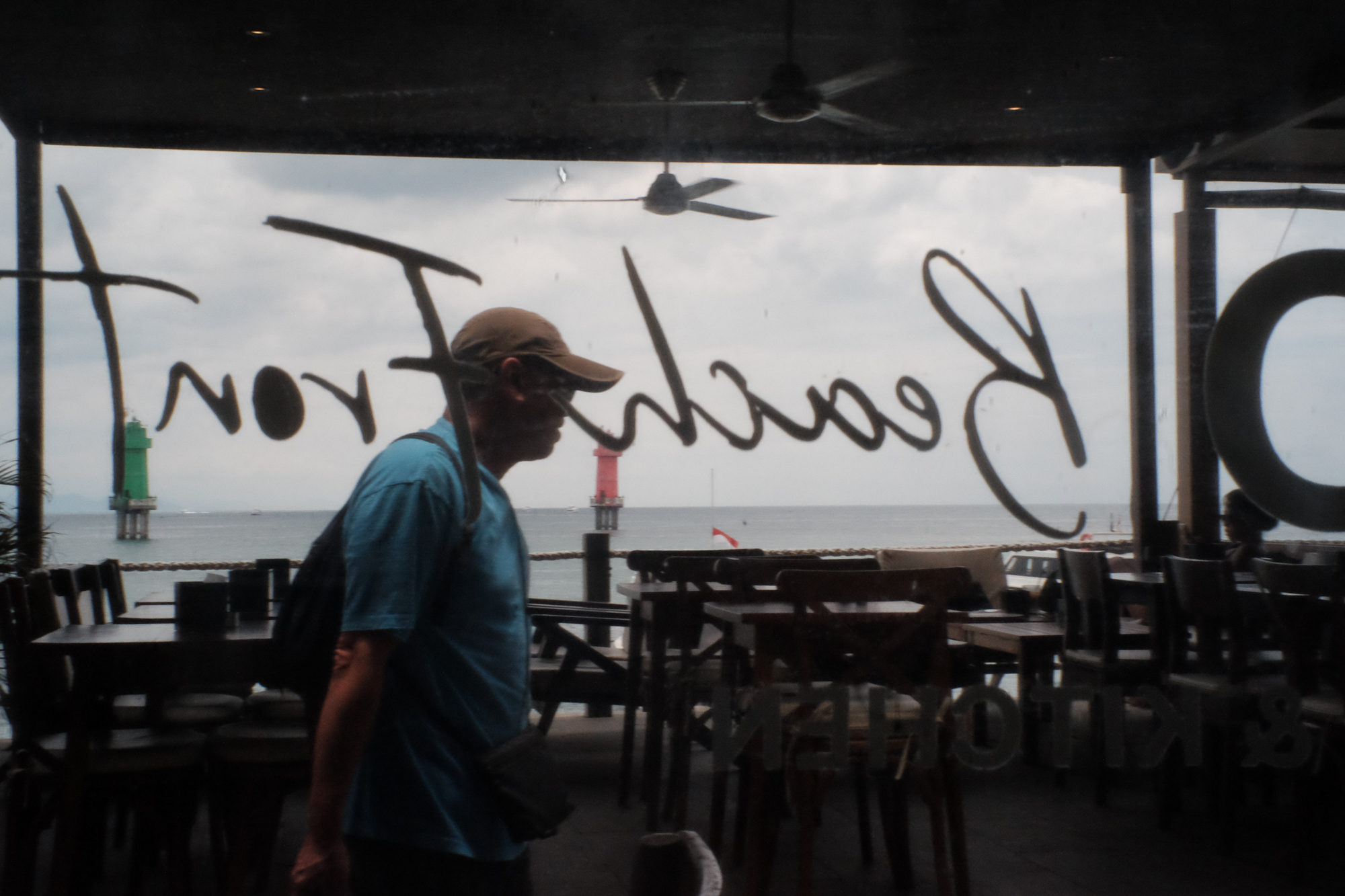 Sadar atau tidak, kawasan Sanur kini terasa berbeda. Deretan restoran dan coffee shop high-end mulai memenuhi pinggir pantai. Menjual view pemandangan laut sebagai daya tarik utama. Saat memotret di sekitar pukul sepuluh pagi, panasnya sudah terasa menyengat. Aku pun melipir ke sebuah kafe ber-AC sambil menikmati segelas iced long black. Tanpa disadari, aku juga menjadi bagian dari ekosistem baru di sini. Nongkrong di kafe sambil menatap laut dari balik jendela. Padahal dulu kawasan ini masih dipenuhi pohon perindang, tempat orang berteduh setelah berenang.