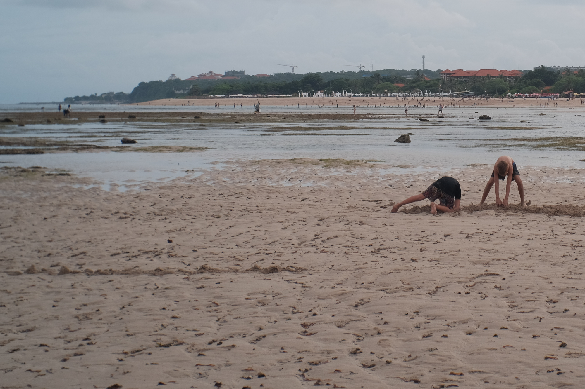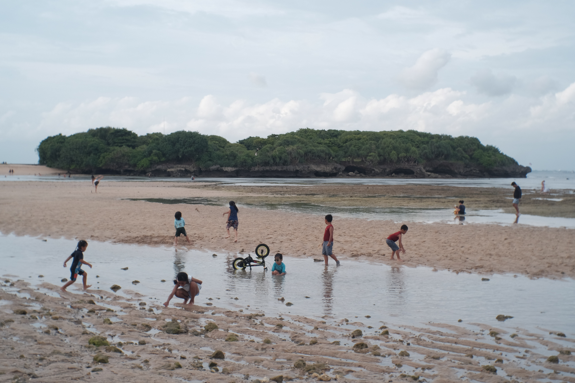 Suatu sore, aku beranjak ke pantai di area Nusa Dua. Karena jarang berenang, dulu aku lebih suka bermain pasir. Membuat istana pasir, mencari kerang, atau mengamati biota laut saat air surut. Kadang aku membuat kolam kecil dengan aliran seperti sungai di atas pasir. Aku teringat masa kecil ketika aku begitu berani menyentuh apa saja. Sekarang, lebih berhati-hati dan tersadar bahwa tidak semua makhluk laut aman untuk disentuh.